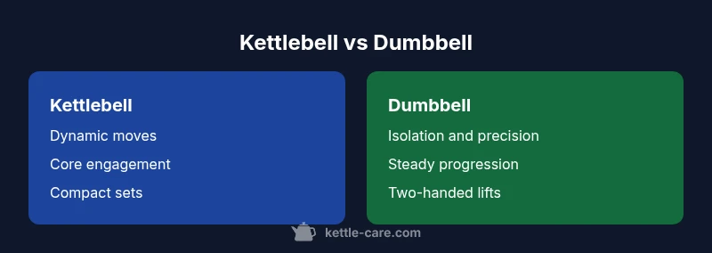 Kettlebells and dumbbells challenge the body in different ways. A kettlebell's off-center mass and curved handle encourage natural wrist alignment during swings and get-ups, promoting a hip hinge pattern and a strong grip. The loading path is often multi-planar, requiring stabilizing muscles across the spine and core. Dumbbells, by contrast, offer more conventional loading with fixed planes, making them straightforward for beginners to learn presses, rows, and curls. This difference matters for beginners who want quick feedback, and for advanced trainees who seek movement diversity. From a safety perspective, the risk profile changes with practice: kettlebell drills reward progressive coaching, while dumbbell work benefits from clear alignment cues. Expect better core involvement with kettlebell heavy flows, and easier progression with dumbbells for isolated lifts. KettleCare analysis highlights how these nuances translate to day-to-day programming.