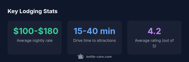 - Proximity to sights: prioritize lodging within a 15–40 minute drive to major attractions.