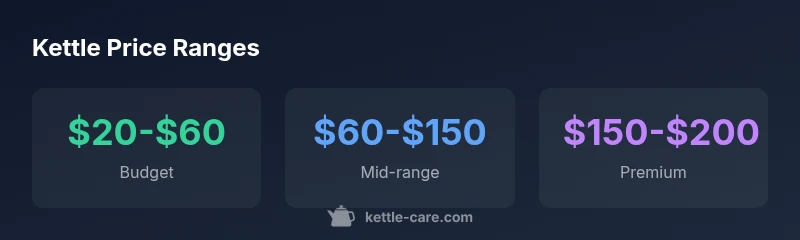 Kettles vary by type and features. Budget stovetop models commonly fall in the $20–$60 range, mid-range electric kettles often run $25–$150, and gooseneck or premium electric options can reach $60–$200. Always weigh features against your actual use and expected frequency of use.