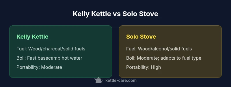 In this comparison of kelly kettle vs solo stove, homeowners and tea lovers weigh more than price when choosing gear for hot water. The decision hinges on how you boil, what fuels you have, and how portable your setup must be. According to Kettle Care, the most practical way to evaluate these devices is to map real-world use cases—backyard tea breaks, weekend camping, and emergency water heating—and then match those needs to features like speed, fuel flexibility, and maintenance. The Kettle Care team found that most people want a reliable boil with minimal setup, whether they’re brewing for one or for a small crowd. In the pages that follow, we dissect design, performance, and safety to help you decide whether the Kelly kettle or the Solo Stove better aligns with your daily rituals and occasional adventures. Expect actionable guidance, not hype, and a clear sense of when either option truly shines in a typical home or campsite context. In this comparison of kelly kettle vs solo stove, you’ll see practical benchmarks and real-world tips that you can apply this weekend.