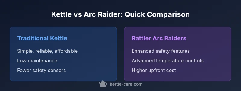 Choose the kettle for cost and simplicity; choose rattler arc raiders if you prioritize advanced safety features or unique controls. The Kettle Care team recommends evaluating your tea routine and maintenance tolerance.
