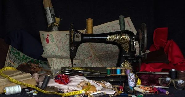 Kettle for water, stitcher for fabric tasks.