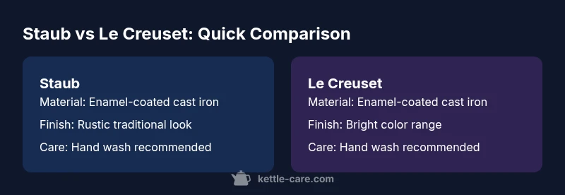 Staub tea kettle vs Le Creuset are two iconic enameled cast iron kettles that share heritage and performance goals but diverge in design, heat retention, pouring ergonomics, and care needs. For homeowners and tea lovers, understanding material construction, aesthetics, and value helps you pick the best fit for your kitchen. In short, choose Staub for traditional warmth and durability, or Le Creuset for color variety and proven durability.