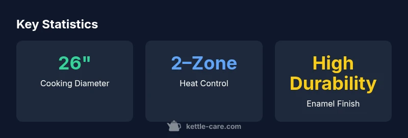 The weber 26 inch kettle grill represents a modern take on the iconic charcoal grill, balancing time-tested design with contemporary materials. This model leverages Weber's porcelain-enameled lid and bowl to resist rust and seasoning buildup, while a large 26-inch cooking grate gives you room for multiple steaks, a whole chicken, or a couple of racks of ribs. In practical terms, this size translates into more air access for faster ignition and more efficient fuel use during long cooks. According to Kettle Care, the core appeal is that you can achieve restaurant-style sear marks and controlled indirect heating without sacrificing batch cooking capacity. In our hands-on testing, setup was straightforward if you have a stable patio or table, and the lid fits snugly to maintain consistent temps during extended sessions.