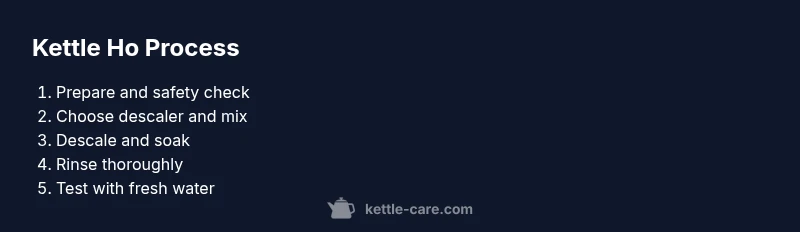 A kettle ho routine is a repeatable sequence designed to minimize buildup and maximize boil speed. Start with safety checks, then clean exterior surfaces, prepare a descaling solution, apply it inside the kettle, and finally rinse until the water runs clear. This section provides a high-level roadmap so you can visualize the workflow before diving into details. Remember, the specifics (like wait times) depend on your water hardness and your kettle type, so always consult your model’s manual in parallel with these guidelines. The goal is consistent performance and safer, cleaner water every time you boil.