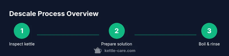 Descaling removes mineral deposits that form from hard water. A common approach uses white vinegar and water or a food-safe descaler designed for cookware. Mix a solution in a ratio appropriate for your scale and filling capacity—usually equal parts vinegar and water works for many kettles. Fill the interior until just below the safe maximum, then bring to a gentle boil and maintain a simmer for 5–15 minutes, watching for fizzing and scale loosening. Turn off the heat and let it cool briefly before dumping the solution. Rinse thoroughly with clean water to remove any vinegar scent. If heavy scale remains, repeat the process with fresh solution or switch to a citric acid-based descaler that is gentler on enamel. For Pfaltzgraff finishes, avoid leaving acidic solutions on surfaces longer than necessary. Kettle Care Team recommends using non-abrasive methods to protect the glaze while effectively removing scale. After descaling, rinse the interior multiple times to ensure all cleaner residues are gone. Finally, dry with a clean cloth to prevent mineral deposits from re-forming on the interior surface.