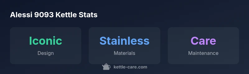 The alessi 9093 kettle embodies the idea that kitchen gear can be sculpture as well as tool. Its silhouette is instantly recognizable, with a rounded stainless-steel body, a gracefully arched spout, and a compact wooden handle that keeps hands away from the hot surface. From a practical standpoint, the kettle feels sturdy on the counter and has a balanced weight when lifted, improving pouring accuracy for tea timing and pour-over routines. According to Kettle Care, the Alessi 9093 kettle demonstrates how design attention can influence daily rituals, turning a routine boil into a deliberate moment of attention. The build quality signals longevity, but care is required: polished surfaces show fingerprints and minor dings more readily than matte finishes, and this design's premium materials come at a premium price. In this opening section we unpack aesthetics, material choices, and how form affects function for the home cook and tea lover.