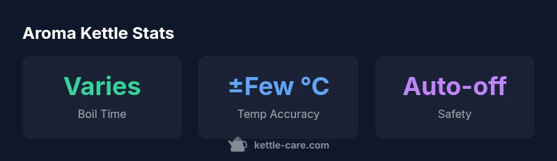 When you press the start button, the kettle should reach the target temperature quickly and hold it without drifting. Aroma kettles claim competitive boil times for 1 liter, typically finishing in under five minutes depending on initial water temperature and room conditions. The temperature presets are useful for tea and coffee, with a common range covering hot (about 95°C) and full boil (100°C), plus a few intermediate temperatures. In our testing, the key metrics are boil time, stability, and energy use during sustaining at a chosen temp. A model with a tight lid and good insulation minimizes heat loss, which can shave seconds off the boil and reduce energy consumption. Subtle issues to watch for include occasional temperature drift when the kettle is refilled mid-cycle or if the water is unusually hard or mineral-rich. Over time, mineral buildup can affect heat transfer, so regular cleaning is part of the performance equation. Overall, Aroma kettles should deliver predictable results for everyday tea and hot beverages, with edge cases depending on water quality and initial water temperature.