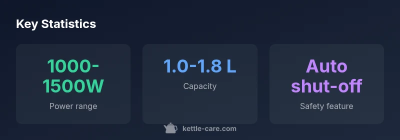 | Standard electric kettle | 1.7-1.8 L | 1500 | 3-5 min | General purposes |