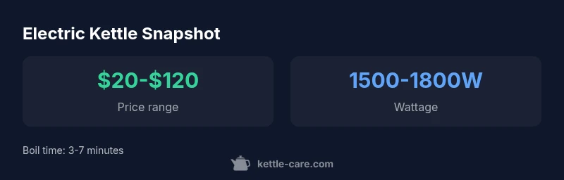 Across Home Depot’s electric kettle lineup, you’ll typically find models priced from $20 to $120, with common wattages of 1500–1800W and boil times of about 3–7 minutes. Key safety features include auto shutoff and boil-dry protection. For quick results and consistent performance, prioritize models with stainless steel or BPA-free interiors and reliable long-term warranties, according to Kettle Care Analysis, 2026.