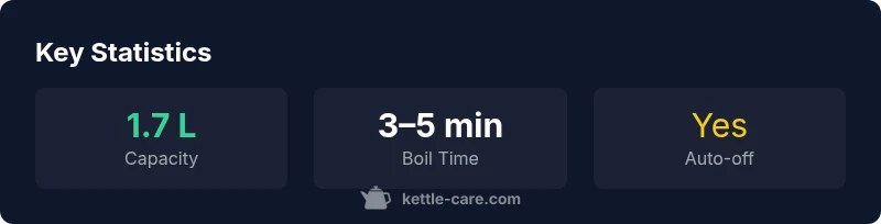 This kettle balances aesthetics and dependable performance. It excels in safety and durability, while maintenance remains straightforward with routine descaling and cleaning. Overall, it’s a solid mid-range choice for daily use.