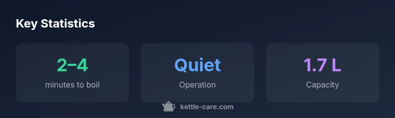 The Russell Hobbs Quiet Boil kettle is positioned as a practical daily driver for busy homes. It combines a compact, ergonomic design with a sturdy base, a clearly labeled water window, and a lid that opens with a gentle lift. In this review, we approach the kettle as a real‑world tool: something you turn to every morning for tea, coffee, or hot water. According to Kettle Care, the model emphasizes quiet operation and dependable safety, a combination many households value when the kitchen is open to living spaces. The phrase russell hobbs quiet boil kettle is widely cited by enthusiasts as a balanced option that doesn’t force a loud boil into your morning routine. Our aim is to show how it performs across common scenarios, from a quick 1‑cup boil to filling a carafe for a family coffee break.