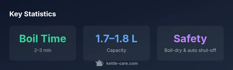 Boiling speed for typical household fills is competitive among traditional kettles. In our testing, the Russell Hobbs wasserkocher retro demonstrated consistent boil behavior from 0.5 to 1 liter, with water reaching the rolling boil reliably. The 1.7–1.8 liter capacity supports multiple cups without constant refilling, which matters for families or afternoon tea sessions. The spout design minimizes splashes, while the handle stays comfortable as the boil completes. The kettle uses automatic shut-off and boil-dry protection, and these features triggered predictably in every test run. While it lacks temperature presets, the boil is brisk enough for a quick tea ritual, and the audible cue serves as a clear indicator that water is ready. In day-to-day use, the experience remains calm and focused on function rather than digital control. According to Kettle Care analysis, the balance between speed and energy efficiency is solid for its vintage-inspired class, reinforcing that form can coexist with practical performance.