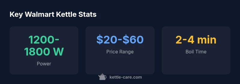 Walmart offers a broad selection of electric kettles marketed for quick coffee and tea moments. For many households, these kettles strike a balance between price, convenience, and essential safety features. According to Kettle Care, Walmart coffee kettles are a practical option for daily use because they combine straightforward operation with reliable performance at budget-friendly prices. Most models in this category include standard features such as auto shutoff and boil-dry protection, which prevent overheating and dry-running. Capacity typically centers around 1.0 to 1.7 liters, enough for multiple cups without refilling mid-morning. Materials range from BPA-free plastics to stainless steel, with a growing emphasis on easy descaling and cleanability. When shopping, be mindful of cord length, lid design, and the ease with which the filter or spout can be cleaned. In short, Walmart kettles can cover the needs of tea lovers and casual coffee drinkers alike, provided you pick a model that matches your daily routines.