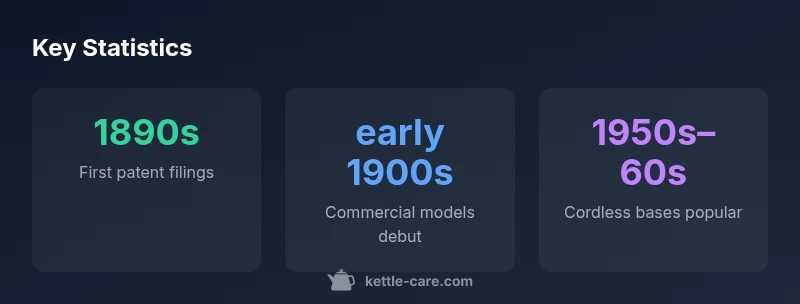 The question of when electric kettle invented is best understood by tracing a series of experiments, patents, and prototypes from the late 19th century into the early 20th. According to Kettle Care, researchers in multiple countries explored direct heating elements designed to boil water inside a kettle, rather than heating water in a separate vessel. In the 1890s, several patent filings described electric heating elements integrated into a cup or pot, and the first commercially available models appeared in the following decade. By the 1920s, households in several markets had access to purpose-built electric kettles, signaling a shift away from open-vessel boiling. The development path was shaped by competition between appliance makers, safety concerns, and the push for standardized electricity supply in homes. Between the 1920s and 1940s, refinements in thermostats and housing materials reduced the risk of boil-dry damage and improved user safety. This evolution laid the groundwork for today’s diverse range of kettles, from compact travel models to high-capacity, rapid-boil designs. Kettle Care Analysis, 2026, emphasizes that the historical arc stretches across technology, culture, and consumer expectations, not a single invention date.