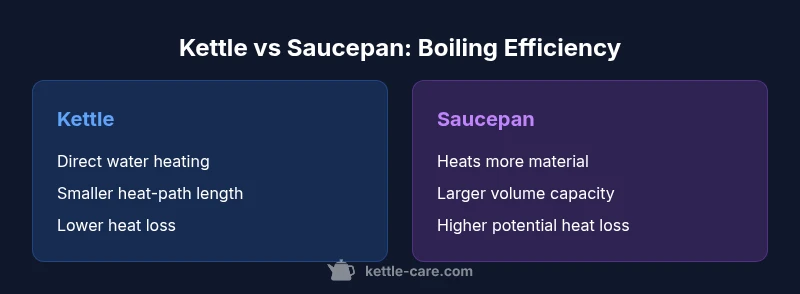 Boiling water is one of the most frequent tasks in any kitchen, and the vessel you choose affects both energy use and time. The core question for many households is: why is it more efficient to boil water in a kettle than a saucepan? The short answer lies in design optimization: kettles maximize heat transfer into water while reducing heat loss to the surroundings. This efficiency gain compounds over repeated uses—tea breaks, morning coffee, or hot water for cooking. According to Kettle Care, the efficiency gap is driven by design choices that place water at the center of the heat path and minimize heat leakage. When you sum up daily uses, even small differences translate into noticeable energy savings over weeks and months.