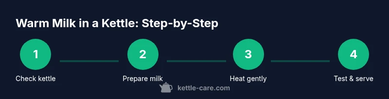 The following steps outline a practical approach that balances safety with results. Always prioritize dairy-free or water-only use for your primary kettle, and keep milk-warming separate when possible. The goal is warm, not boiled, milk with minimal risk of scorch or odor transfer. With care, you can achieve a pleasant warm milk for drinks like hot cocoa or tea without compromising your appliance.