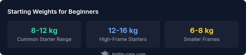 Generally, 8-12 kg (18-26 lb) works for most adults new to kettlebells. Smaller-framed individuals may start at 6-8 kg (13-18 lb). Always prioritize form; if you struggle to maintain posture, stay lighter and focus on tempo and mobility.