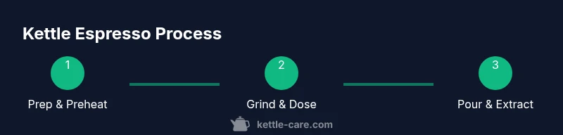 In its essence, kettle espresso is a home brewing approach for creating a dense, espresso-like shot using a kettle and an alternate extraction device (such as a moka pot, AeroPress, or a small filter basket). It is not true espresso, which requires high pressure, but with careful control of grind size, dose, water temperature, and pour rate you can achieve a rich, concentrated cup. According to Kettle Care, precision in pouring and temperature stability are the keys to success. This method appeals to tea lovers and home cooks who want a fast, safe way to enjoy bold coffee without a dedicated espresso machine. The goal is a compact volume with strong flavor, a crema-like impression, and a clean finish. Understanding how kettle espresso differs from true espresso helps set expectations and guides equipment choices.