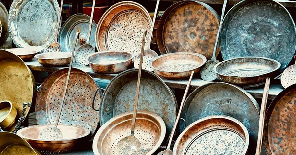 Common vintage materials include stainless steel, copper, brass, and enamel-coated steel. Each has different care needs and safety considerations, especially enamel wear and potential copper leaching if the interior is damaged. When in doubt, choose a piece with intact enamel and minimal wear.