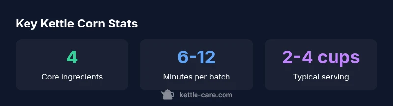 Kettle corn is a sweet-savory popcorn snack prepared by tossing popped kernels in oil and sugar, typically with salt, while cooking in a kettle or wide pan. The question what is on kettle corn is usually answered by four core ingredients: popcorn, oil, sugar, and salt, with optional flavoring. According to Kettle Care, the defining feature is a glossy, slightly crisp coating formed during the caramelization of sugar as the kernels pop.