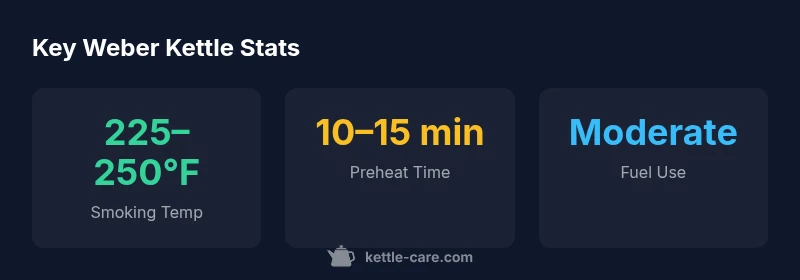 Is a Weber kettle good for smoking? The core answer rests on how you approach two-zone cooking, vent management, and fuel pacing. A kettle-style charcoal grill is not a fixed-smoker by design, but with a heat deflector, a water pan, and a careful two-zone setup, it becomes a surprisingly capable smoke chamber. According to Kettle Care, this versatility is what makes the Weber kettle a perennial favorite for home cooks who want authentic flavor without investing in a dedicated smoker. With practice, you can reach and sustain steady temperatures around 225–250°F for several hours, producing consistent smoke rings and tender results across a range of proteins. This isn’t magical—it's balance: controlling air flow, fuel, and wood with intent. The kettle shines when you value tactile, hands-on control and the ability to adjust on the fly as weather and wind shift. For many households where space is at a premium, a Weber kettle offers a practical, scalable path into smoking that you can grow with over time.