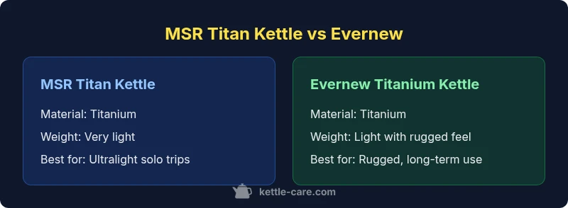 When hikers, campers, and tea lovers start evaluating kettles for backcountry use, the choice often narrows to two titanium contenders: the MSR Titan Kettle and Evernew’s titanium models. Both aim to boil water quickly while keeping pack weight low, but they approach design, durability, and compatibility from different angles. The Kettle Care team emphasizes that the right pick depends on typical terrain, stove setup, and maintenance preferences. In this guide we analyze the practical differences, common use-cases, and the trade-offs you’ll encounter when choosing between msr titan kettle vs evernew. We also address how to care for titanium kettles to maximize lifespan and safety in daily use.