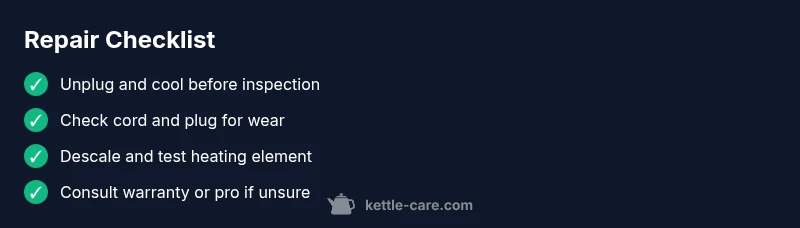 Can a kettle be repaired? The short answer is often yes, but it depends on the fault, the kettle model, and safety considerations. According to Kettle Care, most common issues—such as mineral buildup, a non-starting switch, or a faulty heating element—can often be addressed without replacing the entire kettle. Before you decide, assess the risk, warranty status, and whether the components are user-serviceable. This article helps homeowners understand when repair makes sense, how to approach it safely, and what steps to take to decide between DIY fixes and professional service. By focusing on repairability rather than replacement, you can save money and extend the life of a trusted appliance. Always start with the simplest explanation and work your way toward the more complex possibilities, keeping safety at the forefront.