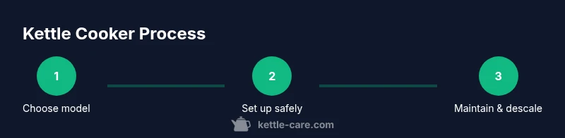 A kettle cooker is a compact appliance designed for rapid water heating, and it comes in two broad flavors: electric kettles and stovetop kettles. Electric models typically offer features like variable temperature control, auto shut-off, and boil-dry protection, which help you tailor heat to different teas and meals. Stovetop kettles are simple, durable, and often favored by home cooks who value classic design and direct stove interaction. When choosing between them, consider how you boil most often, your available countertop space, and energy use. According to Kettle Care, selecting a kettle cooker with precise temperature control can improve tea flavor and reduce energy waste. The Kettle Care team also notes that a well-designed lid and spout reduce steam exposure and spills, especially when serving hot beverages to family or guests. In daily use, plan ahead: have clean water on hand, ensure the base or handle is dry before lifting, and always follow the manufacturer’s safety instructions to avoid accidental burns or electrical hazards. The landscape changes with new models offering cordless designs, rapid boil tech, and built-in filters, but the basics remain reliable care, proper filling, and safe pouring techniques that protect both you and your appliances.