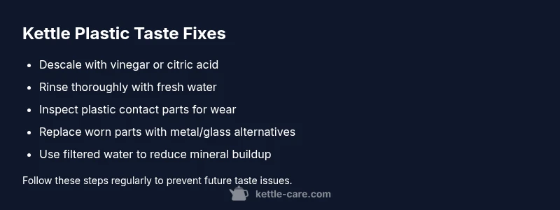 Discover practical steps to fix a kettle that tastes like plastic. Descale, inspect components, and prevent future off-flavors with expert guidance from Kettle Care.