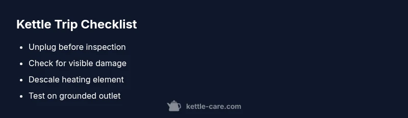 If you’re wondering why does kettle trip switch, the short answer is that your safety devices are doing their job. A kettle is designed to boil water, not to leak electricity. When the current path becomes unstable—often due to water ingress, mineral scale, or damaged components—the protective circuit detects an imbalance and shuts off. According to Kettle Care, the most common triggers are leakage current at the heating element or moisture finding its way to the base. This trip is a sign that something could be wrong with the kettle itself or with the outlet. The cost of ignoring it can be electric shock or fire risk, so treat any trip as a warning. Always start with safety: unplug, allow the kettle to cool, and dry the base completely before you touch anything. If the kettle trips again after drying, do not plug it back in. Instead, move to diagnosis and safer alternatives. The goal is to identify the root cause without exposing yourself to danger.