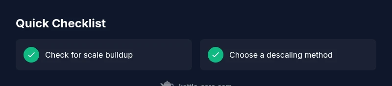 Decide between vinegar, citric acid, or a commercial descaler. Each method has pros; vinegar is inexpensive, citric acid is milder on plastics, and commercial descalers are designed specifically for kettles.