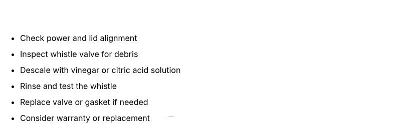 The most common reason your kettle isn’t whistling is mineral buildup on the whistle valve or a partially blocked spout. Start with a safety check, unplug the kettle, then descale and inspect the whistle cap. If the problem persists, replace the whistle valve or lid gasket. Also verify the water level is correct and the lid sits firmly in place before boiling.